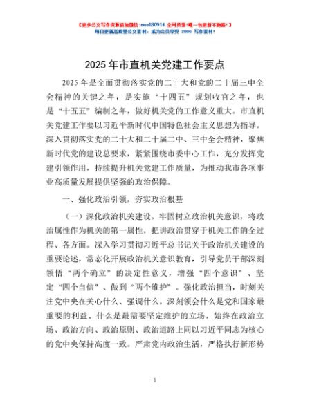 / 2025年市直机关党建工作要点