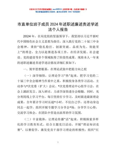 / 市直单位班子成员2024年述职述廉述责述学述法个人报告