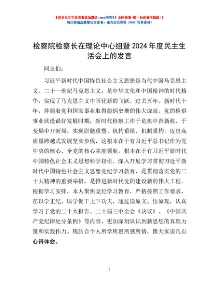 / 检察院检察长在理论中心组暨2024年度民主生活会上的发言