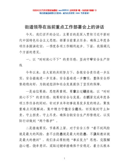/ 街道领导在当前重点工作部署会上的讲话