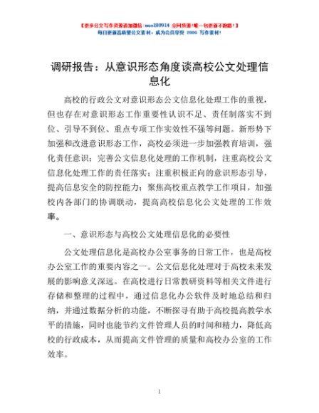 / 调研报告:从意识形态角度谈高校公文处理信息化