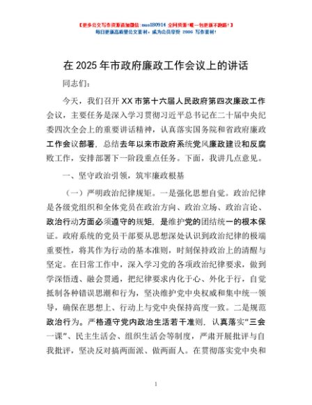 / 在2025年市政府廉政工作会议上的讲话