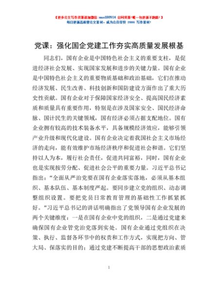 / 党课:强化国企党建工作 夯实高质量发展根基