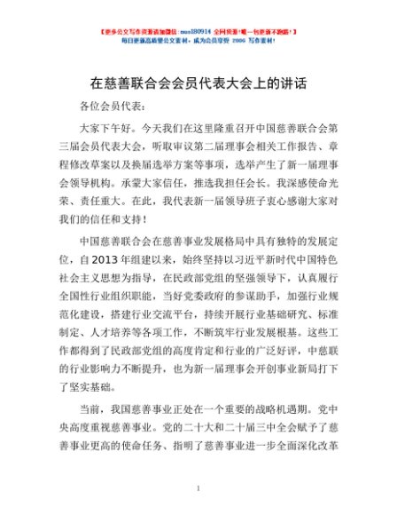 / 在慈善联合会会员代表大会上的讲话