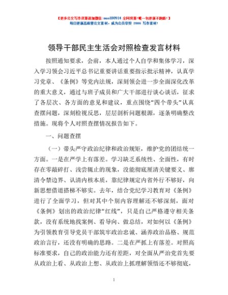 / 领导干部民主生活会对照检查发言材料