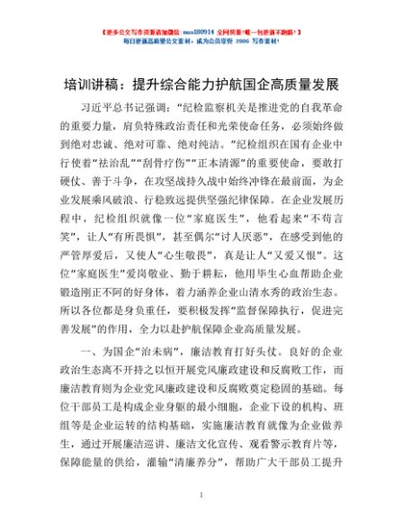 / 培训讲稿:提升综合能力 护航国企高质量发展