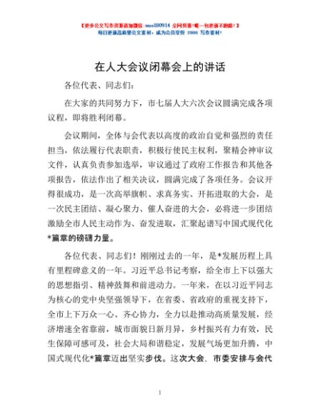 / 在人大会议闭幕会上的讲话