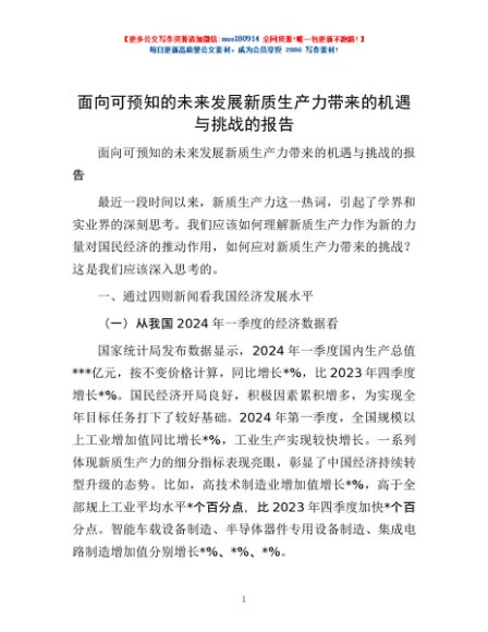 / 面向可预知的未来发展新质生产力带来的机遇与挑战的报告