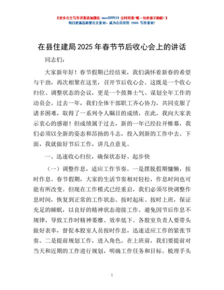 / 在县住建局2025年春节节后收心会上的讲话