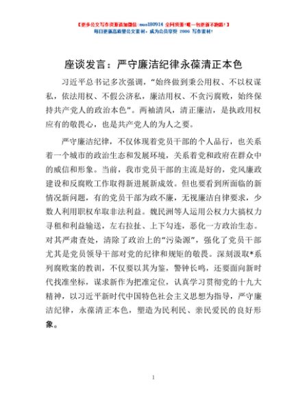 / 座谈发言:严守廉洁纪律 永葆清正本色
