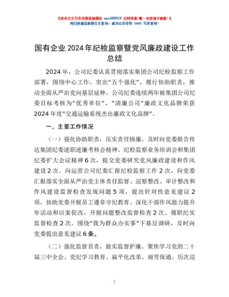 / 国有企业2024年纪检监察暨党风廉政建设工作总结