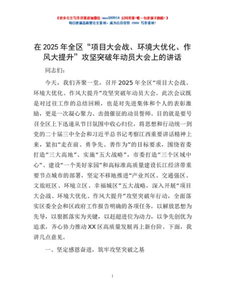 / 在2025年全区“项目大会战、环境大优化、作风大提升”攻坚突破年动员大会上的讲话