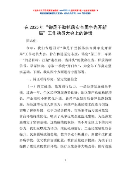 / 在2025年“铆足干劲抓落实奋勇争先开新局”工作动员大会上的讲话