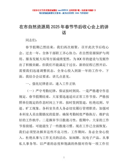 / 在市自然资源局2025年春节节后收心会上的讲话
