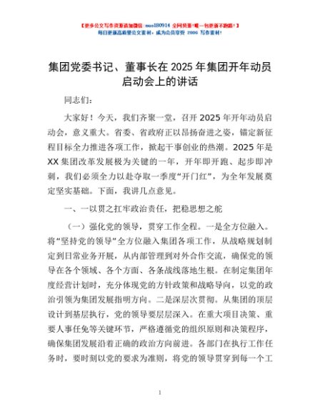 / 集团党委书记、董事长在2025年集团开年动员启动会上的讲话