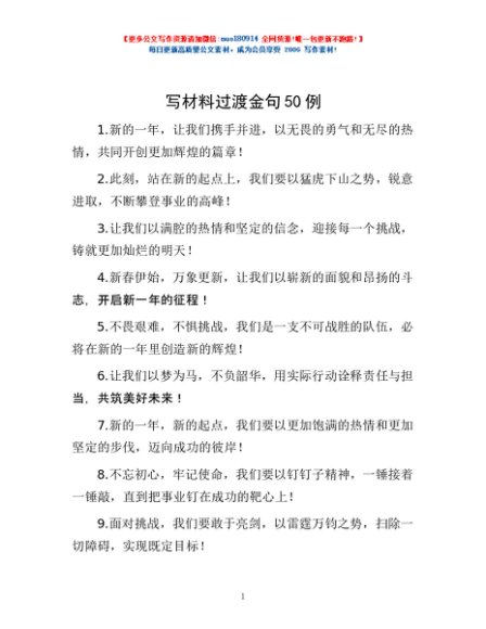 / 写材料过渡金句50例