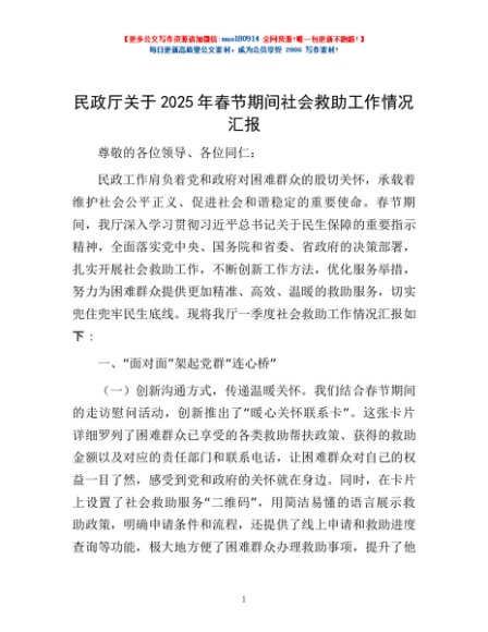 / 民政厅关于2025年春节期间社会救助工作情况汇报