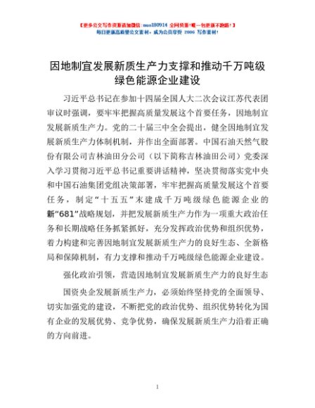 / 因地制宜发展新质生产力支撑和推动千万吨级绿色能源企业建设