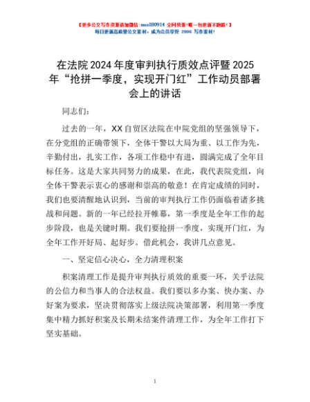 / 在法院2024年度审判执行质效点评暨2025年“抢拼一季度,实现开门红”工作动员部署会上的讲话