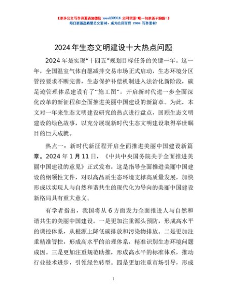 2024年生态文明建设十大热点问题