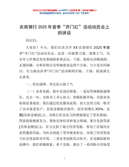 / 农商银行2025年首季“开门红”活动动员会上的讲话
