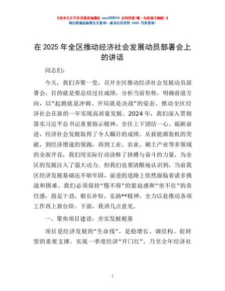 / 在2025年全区推动经济社会发展动员部署会上的讲话
