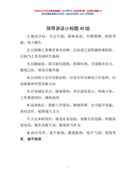 / 领导讲话小标题40组