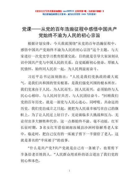 / 党课——从党的百年浩瀚征程中感悟中国共产党始终不渝为人民的初心宗旨