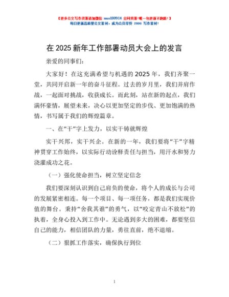 / 在2025新年工作部署动员大会上的发言