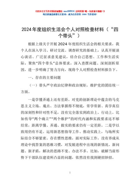 / 2024年度组织生活会个人对照检查材料(“四个带头”)