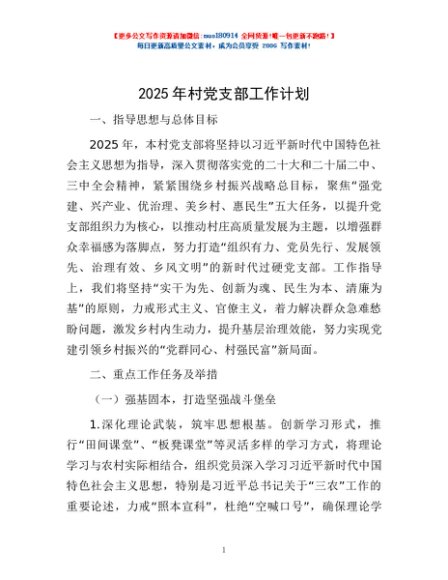 / 2025年村党支部工作计划
