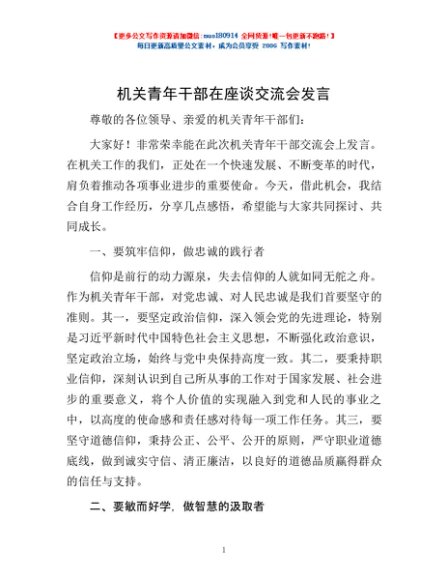 / 机关青年干部在座谈交流会发言