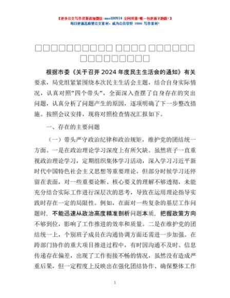 / 市直单位党组领导班子2024年度专题民主生活会对照检查材料