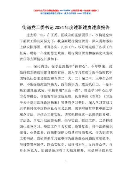 / 街道党工委书记2024年度述职述责述廉报告