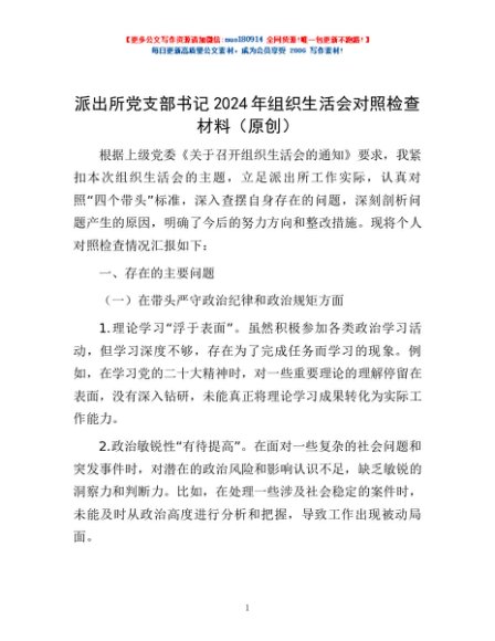 / 派出所党支部书记2024年组织生活会对照检查材料(原创)