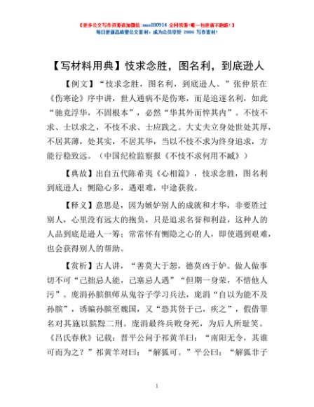 【写材料用典】忮求念胜,图名利,到底逊人