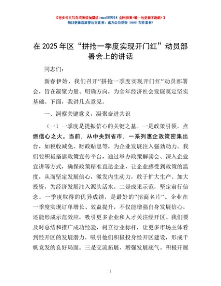 / 在2025年区“拼抢一季度 实现开门红”动员部署会上的讲话