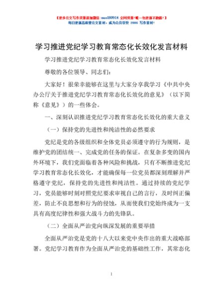 / 学习推进党纪学习教育常态化长效化发言材料