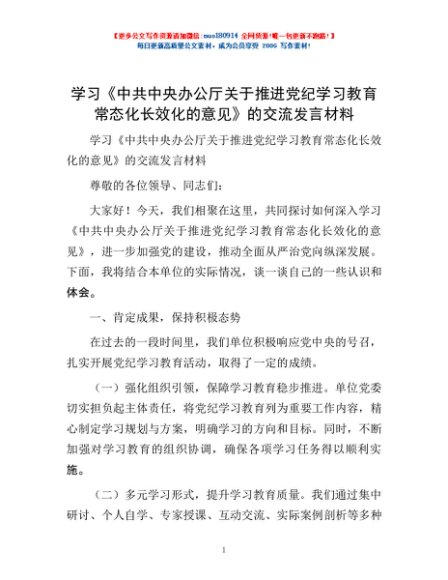 / 学习《中共中央办公厅关于推进党纪学习教育常态化长效化的意见》的交流发言材料