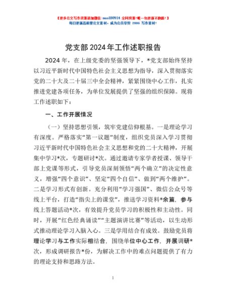 / 党支部2024年工作述职报告