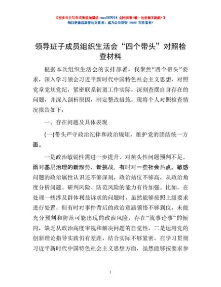 / 领导班子成员组织生活会“四个带头”对照检查材料