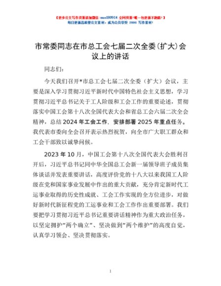 / 市常委同志在市总工会七届二次全委(扩大)会议上的讲话