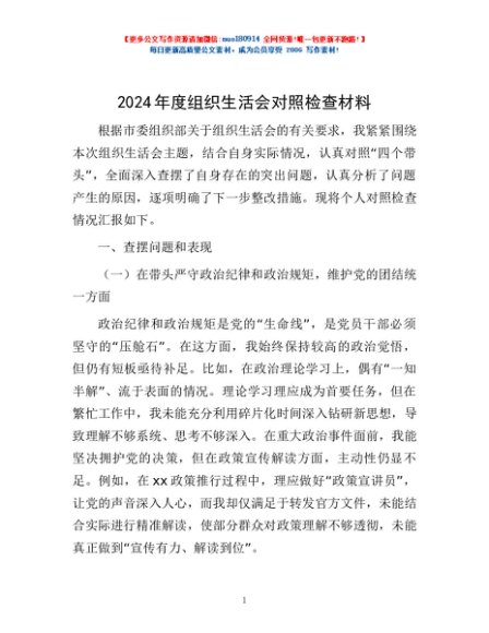 / 2024年度组织生活会对照检查材料