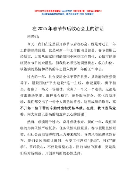 / 在2025年春节节后收心会上的讲话