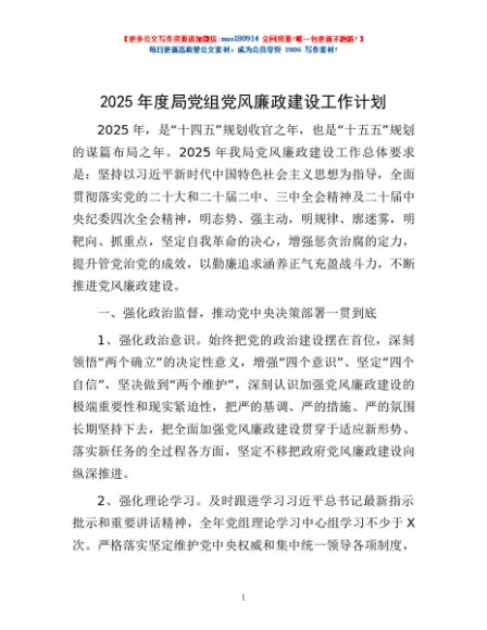 / 2025年度局党组党风廉政建设工作计划