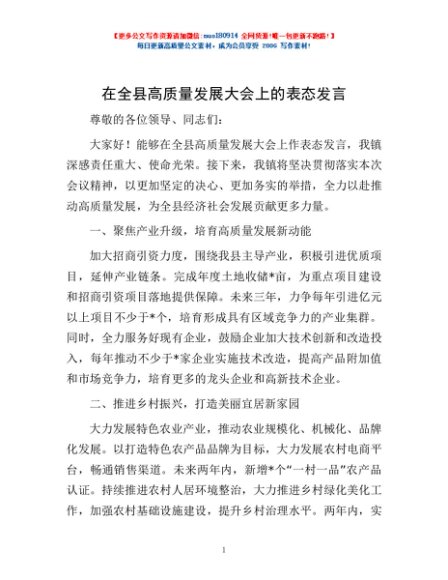 / 在全县高质量发展大会上的表态发言