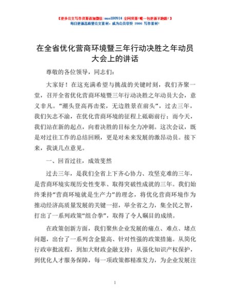 / 在全省优化营商环境暨三年行动决胜之年动员大会上的讲话