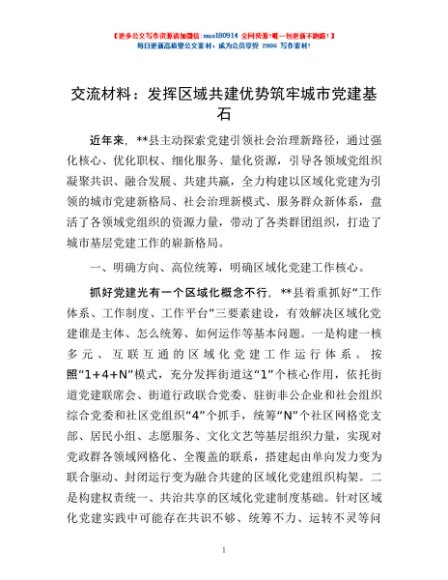 / 交流材料:发挥区域共建优势 筑牢城市党建基石