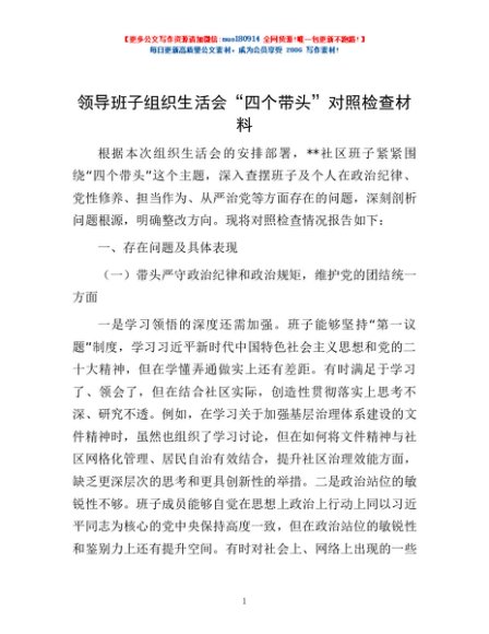 / 领导班子组织生活会“四个带头”对照检查材料