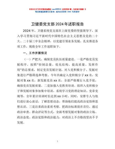 / 卫健委党支部2024年述职报告